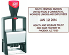 2860 - HEAVY DUTY Self-Inking CUSTOM Date Stamp with your personal text/logo added. Metal Frame, extra heavy duty for high volume use. Designed for thousands of impressions. Large area 2"x2-3/4" with #1-1/2 dates in center.